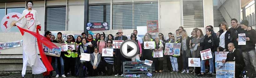 Video zur gestrigen Demonstration in Gland VD gegen die japanische Treibjagt und Walen in Gefangenschaft - WAZA muss ein Ende dieser Praktiken setzen! Durch ihre Untätigkeit ist WAZA für den "Völkermord" an den Delfinen und Kleinwalen in Taiji mitverantwortlich.
