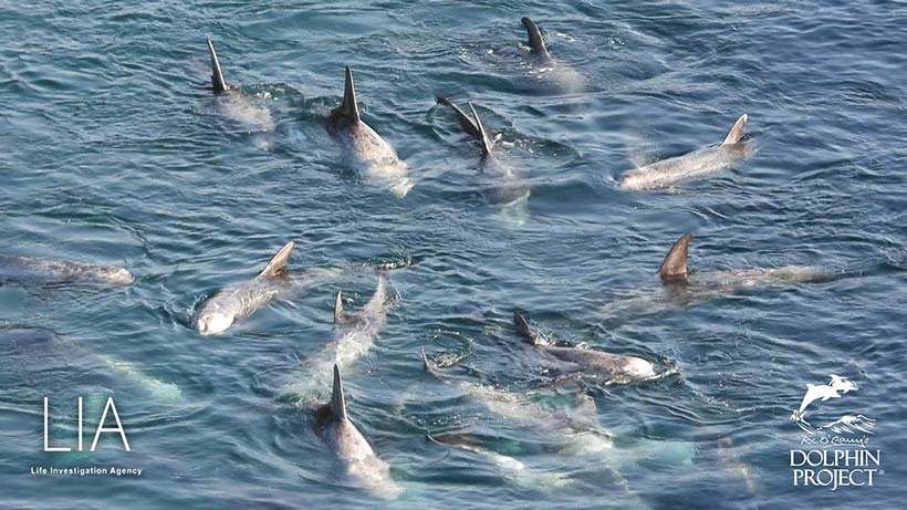 Innerhalb von wenigen Stunden nach Verlassen des Hafens, entdeckte die Delfin-Jagd-Flotte der Mafia von Taiji eine Herde Breitschnabeldelfine. Ren berichtete, dass es sich bei den 11 in die Bucht terrorisierten Breitschnabeldelfinen hauptsächlich um Mütter mit Kindern handelte...