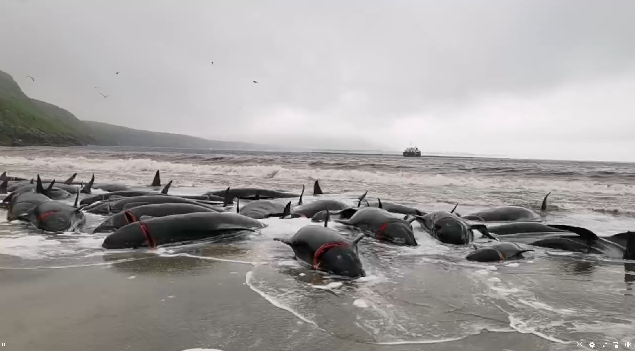 Inklusive der ungeborenen Delfine, wurden heute Samstag, 07. Mai 2022, im Blutsport 71 Pilotwale, bestehend aus mindesten drei Familien mit Kindern, stundenlang im Meer terrorisiert und durch einen Killer-Mob am Strand der Hauptstadt der Färöer Inseln brutal ermordet...